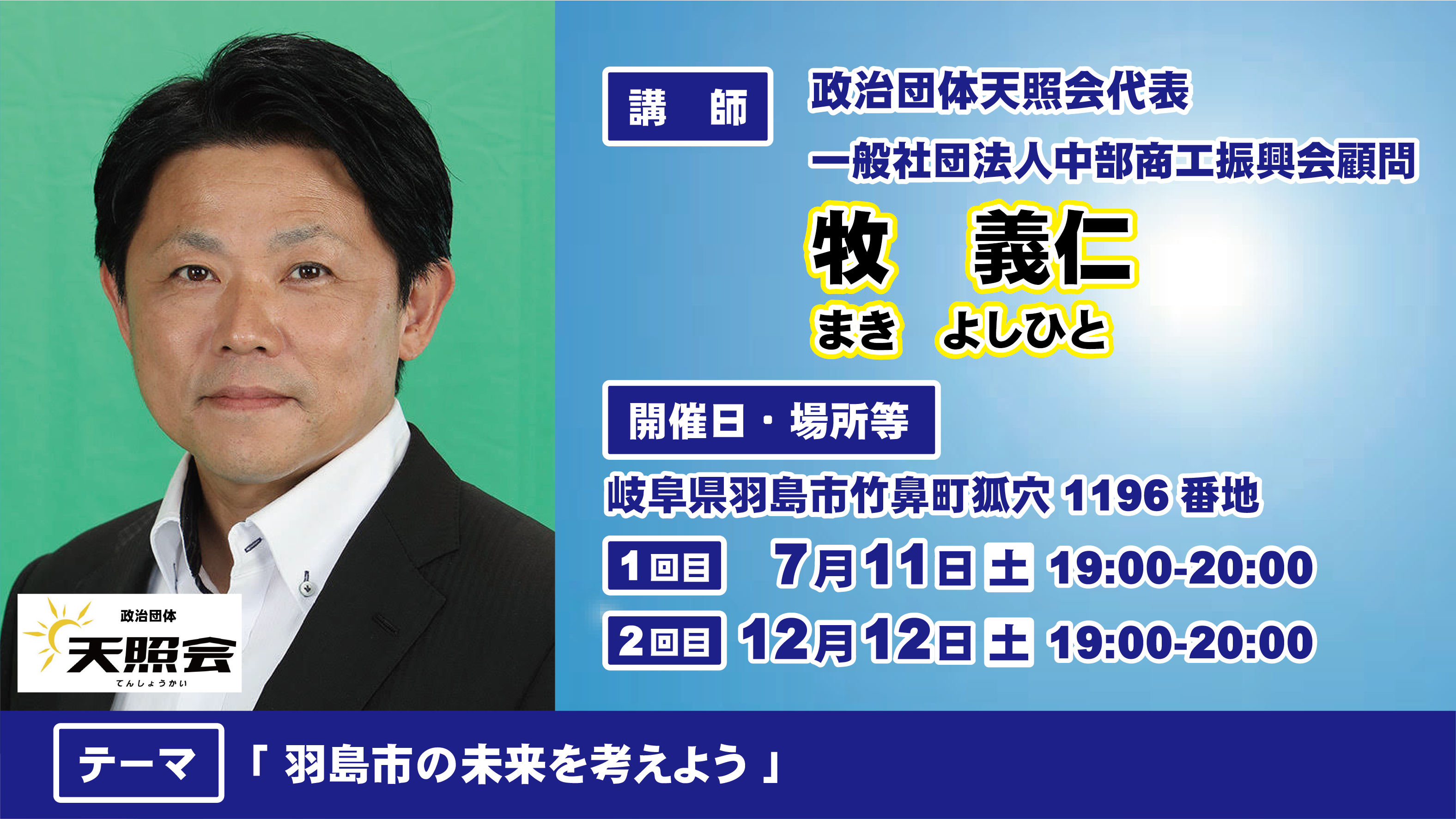 岐阜羽島天照会は、一般社団法人中部商工振興会の顧問である牧よしひとの応援する政治団体です。